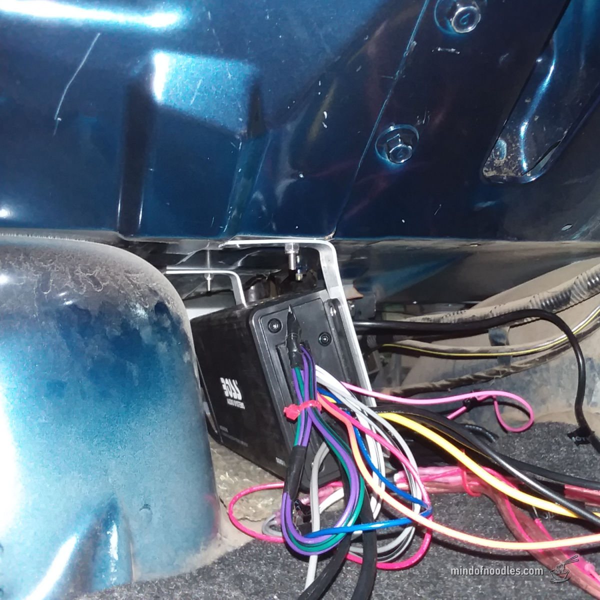 I installed the amplifier underneath the rear deck, behind the inner trunk liner.